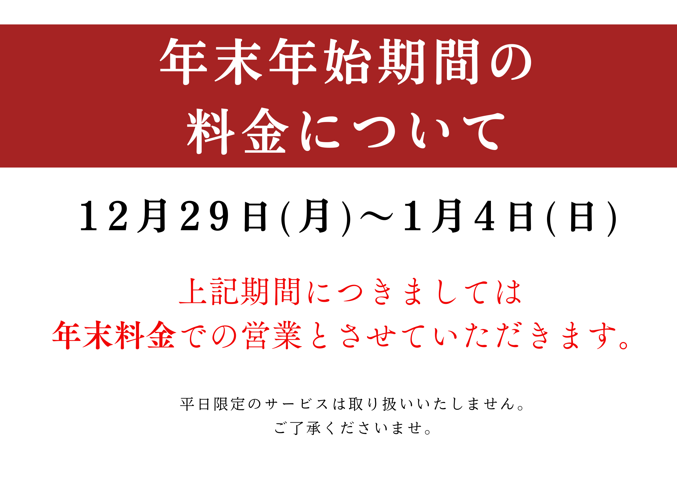 年末年始料金日